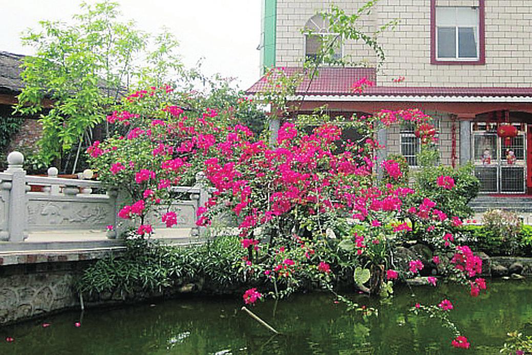 左图:沿江路李明瑞故居里的三角梅如霞似火。