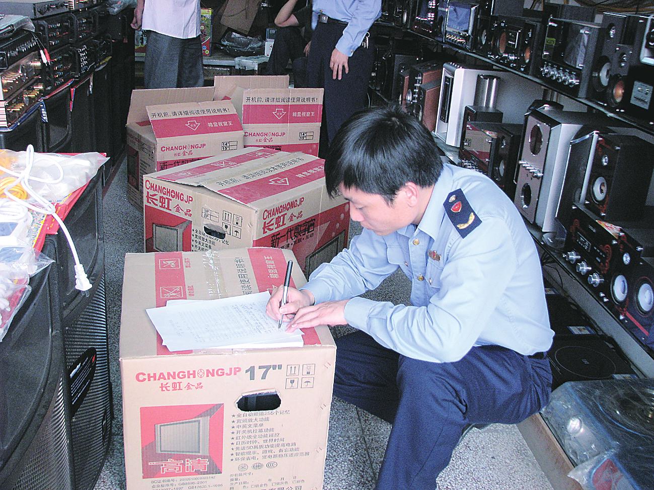 本报北流讯 近日,根据群众对购买才两个月的新彩电就发生爆炸的投诉,北流市工商局迅速行动,对位于该市城南路的电器店进行了检查,工商执法人员查扣了无合格证的彩色电视机25台,立案5起。 据检查发现,有5家电器店的业主无法提供所销售彩色电视机的进货单据、产品合格证、产品保修卡等,涉嫌违反《中华人民共和国产品质量法》的相关规定,工商执法人员对当事人销售无合格证的彩色电视机进行查封扣押,并立案调查。目前此案正在进一步处理中。 北流工商温馨提示:证卡不齐全的电视机在使用过程中存在很大安全隐患,一旦出现事故,消费者也很难获得相应赔偿。消费者购买家电商品应当到正规商场购买,查看是否证卡齐全,并保存好购物发票,出现消费纠纷应及时拨打12315投诉。 (乐志成柯小晞) 下图为工商执法人员扣押无合格证的彩电。