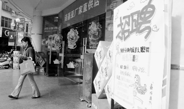 | 一家商场门前的招聘广告。 |