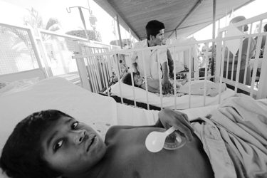 3月20日,在墨西哥格雷罗州奥梅特佩克市,医院的病人被转移至室外。