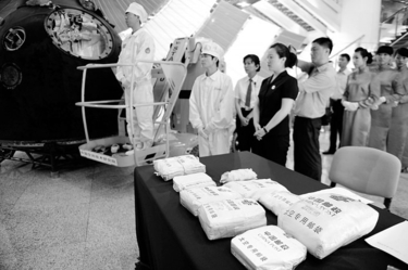 | 神九返回舱在京开舱搭载物品亮相 |
