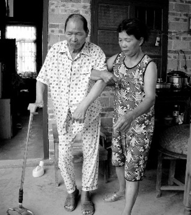 曾经令人羡慕的幸福生活 今年61岁的田兆贞是福绵管理区樟木镇新龙村人。田兆贞是在20岁那年经人介绍认识庞鹏的。庞鹏比田兆贞大3岁,樟木镇太平杏村人,是一名小学教师。田兆贞第一次见到庞鹏就产生了好感,觉得他为人老实,又是一名知识分子。两人刚认识不久,田兆贞就被推选去学拖拉机驾驶技术,后来在樟木农机站当了一名拖拉机手。田兆贞是一个女强人,很多男人都驾驭不了的中型拖拉机,却被她“治理”得服服帖帖,她还开着拖拉机走南闯北到处去运货。5年后,两人才结婚成家。结婚后,夫妻俩恩恩爱爱,齐心共创美好生活。庞鹏安心教书,有着灵活头脑的田兆贞则驰骋在生意场上,她在村里开过一段时间缝纫店后,还外出开过推土机,然后又返回村里养猪、养鸭、种莲藕。由于夫妻俩共同努力,他们的生活过得有滋有味。1980年和1983年,两个儿子相继诞生,更给这个幸福家庭增添了不少喜悦。1987年,夫妻俩在村里建起了一层火砖水泥房。 田兆贞和庞鹏在生活上的配合相当默契,田兆贞做生意比较繁忙,庞鹏就肩负起照顾两个孩子的重任。周末不上课的时候,庞鹏还帮助田兆贞处理一些生意上的事务和家务事。 生活因一场车祸而发生改变 在夫妻俩的共同努力下,这个幸福的小家庭生活越过越好。1992年,在田兆贞的操劳下,家里房子的第二层也建好了。由于建房的时候欠下了一些债务,田兆贞决定拓展新的生意项目以便早日还债并改善生活,在这一年,她到玉林开了一家建材店。为了让生意尽快走上正轨,生意上的每一个环节她都亲力亲为。为了节省成本,田兆贞经常一个人在晚上骑上三轮车到厂里拉货,同样是为了省钱,她学会了制作马钉。在田兆贞的努力下,她的建材店生意很快走上了正轨,营业额节节攀升,田兆贞一家的生活越过越滋润。 而随着生意的日渐红火,家里建材店的人手明显不够,于是庞鹏办理了停薪留职手续,到玉林帮妻子打理生意。1993年元旦的那一天,庞鹏驾驶摩托车前往陆川学习塑料制作,当他来到陆川县城时,为了躲闪一辆自行车而撞上了一辆迎面开过来的中巴车。庞鹏一下子被撞出了几十米远,重重摔倒在地上不省人事。庞鹏被送往陆川县人民医院抢救,医生诊断是身体多处受伤之外,还造成了脑震荡。 这个突如其来的车祸对于田兆贞来说犹如晴天霹雳。听到丈夫遭遇车祸的消息后,田兆贞马上放下手中的生意赶到陆川照料丈夫。病床前,看到昏迷不醒的丈夫,田兆贞泪如雨下。庞鹏在医院住院治疗70天后才苏醒过来,在丈夫昏迷不醒的那段时间,为了防止丈夫的肌肉萎缩,田兆贞每天都给他做几次按摩。为了早日唤醒丈夫,田兆贞每天都和丈夫“聊天”。工夫不负苦心人,70天过后,庞鹏终于苏醒过来了,尽管头脑很凌乱,手脚也乱动,控制不住自己的行为,但田兆贞还是喜出望外,喜极而泣。在陆川县人民医院住院治疗一年后,庞鹏转到玉林地区人民医院继续接受治疗。在玉林地区人民医院治疗半年后,庞鹏的伤情有所好转,田兆贞为丈夫办理了出院手续带回家里照顾。出院时,医院对庞鹏的评定是二级残废。 出院后,庞鹏依然无法站起来走路,日常饮食起居也无法自理,都需要田兆贞的特别护理:喂饭、喂药、清理大小便、擦洗身子、按摩等。田兆贞每天都扶着他练习走路,希望他早日能够站起来。田兆贞除了照顾丈夫,还得承担整个家庭的经济收入和教育孩子的重任,她顽强地用瘦弱的双肩扛起了这个家。她用坚强战胜了接二连三的灾难 经过4年多的精心照料,庞鹏的健康状况明显好转,基本上能够生活自理了,让一直辛劳付出的田兆贞感到无比欣慰,她终于可以松了一口气。 丈夫的身体好转了之后,田兆贞可以把更多的精力投入在生意上。后来,田兆贞开了一家制钉厂,随后又借钱在玉林的万花小区建了一栋房子。为了早日还清债务,田兆贞更加努力地赚钱。她在一个学校门口开了一个早餐店,每天凌晨3点就起床做早餐,早上7点收摊后又到铺面开门,安排好铺面的事情后再到厂里处理事务,下班后再回家处理家务事和照顾丈夫。为了这个家,田兆贞像个陀螺一样转,她每天的休息时间不到3个小时。 田兆贞还没有轻松几年,灾难又一次降临到丈夫身上。2007年中秋节的第二天,庞鹏搭乘公交车要到妻子的公司帮忙,刚到人民东路石棠村站下车不久,他就被一个骑电动车的女子从后面撞了过来,庞鹏身子往后倒的时候头部碰到车把,之后再往前摔。这一次车祸,除了嘴巴开裂缝了五针,还造成了庞鹏再一次的脑震荡。庞鹏又一次因车祸住进了医院,住院期间,田兆贞日夜陪伴在丈夫身边,每天给他喂药、清理大小便、擦洗身子、按摩。庞鹏在医院住院治疗3个月后才出院,这一次重创导致庞鹏生活完全不能自理,此外,连人也认不清了。田兆贞只好关掉生意,把丈夫带回樟木老家照顾。遭遇第二次车祸,庞鹏的身体状况差了很多,晚上经常咳嗽,还经常大小便失禁,这也直接影响到田兆贞的正常休息。因为实在太辛苦,加上休息时间少,2008年,田兆贞患上了急性脑梗塞,住院治疗半个月才有所好转。为了让丈夫重新站起来,田兆贞每天都用手扶着庞鹏到外面呼吸新鲜空气和练习走路。在练习走路的过程中,庞鹏时常有大小便失禁的现象发生,但即便这样,田兆贞依然不放弃自己的计划。 为了达到更好的效果,田兆贞带丈夫到诊所按摩,持续按摩了一个多月后,庞