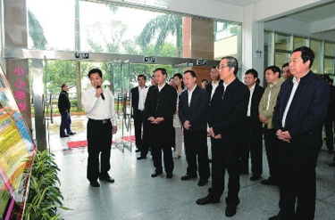 自治区主席马飚(前右二),自治区党委常委、自治区副主席林念修(前左二)在玉林市委书记、市人大常委会主任金湘军(前左三),市长韩元利(右一)的陪同下到陆川县中学调研。