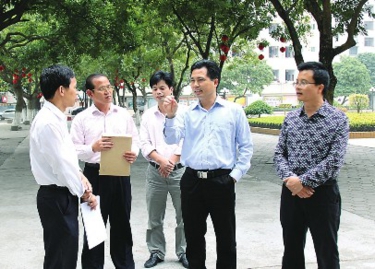 陆川县县长陈杰(右二)等县领导深入陆川县中学调研。