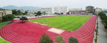 绿草如茵的足球场和400米塑胶跑道。