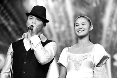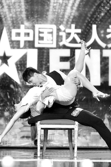 ▲在《中国达人秀》舞台上,黎鸣与林菲演绎唯美双人舞。