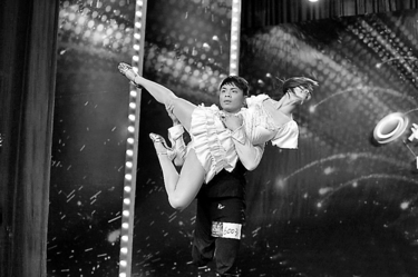 今年,黎鸣和林菲排练了一个新舞蹈,为了找一个舞台证明自己,他们报名参加了《中国达人秀》。通过视频回放,我们还能回味到黎鸣和搭档林菲的精彩演绎:音乐响起后,独坐在椅子上的黎鸣如同王子一般,帅气而自信,而属于他的公主,穿着漂亮舞裙的林菲正向着他缓缓走来。随着音乐的变化,黎鸣与林菲一起为大家演绎了一段唯美的双人舞,全场观众如痴如醉。舞蹈中,他将林菲抱起来在肩上旋转,动作惊险。