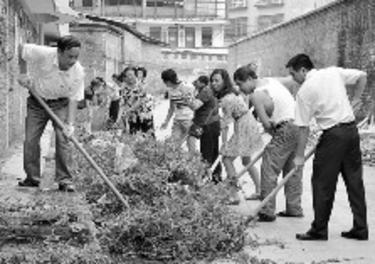 为给社区群众营造干净整洁的卫生环境,5月14日,玉州区玉城街道、州珮社区工作人员对州珮社区范围内的环境卫生进行大清理,集中力量清扫卫生死角,铲除路边杂草、建筑垃圾和生活垃圾,美化、净化社区环境。 (本报记者蒋金泰摄)
