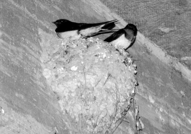| 一对幸福的燕子,在农家院里筑的窝里怡然自乐。 |