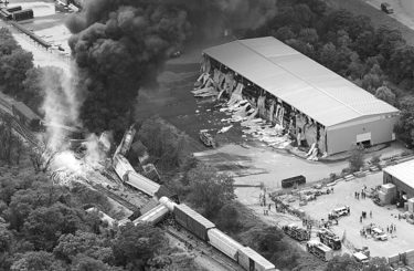 5月28日,在美国马里兰州巴尔的摩,浓烟从出轨火车车厢处冒出。