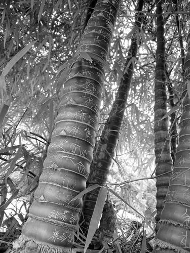 近日,记者在陆川县珊罗镇龙珠湖发现,景区内的几棵罗汉竹上刻满了诸如“××我爱你”、“××到此一游”等字样,有的还配上漫画,更有甚者还写上一些污言秽语。记者看到,罗汉竹的主干部分,凡是能刻字的地方,都被密密麻麻地刻上了字,有些人还将原来的字刮去又重新刻上新的字,整条竹干看上去“伤痕累累”。针对这种在景区竹子上胡乱刻画的不文明现象,很多人看到后表示非常气愤,并呼吁游客能做到文明旅游,不要到处留“墨宝”。 (本报记者黄剑红摄)