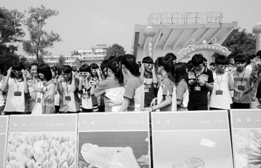 | 同学们戴着3D眼镜在3D展板前参观。 |