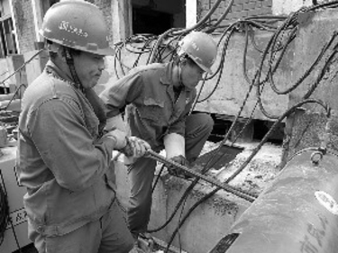 | 11月1日,现场施工人员在现场布置千斤顶。 |