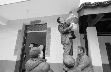 1月25日,在芦山地震灾区四川雅安市雨城区姚桥新区蒙子村,附近的村民为王廷龙老人的新房挂灯笼。 大红灯笼挂起来,喜庆春联贴上墙……在芦山地震灾区四川雅安市雨城区姚桥新区蒙子村,78岁老人王廷龙站在自家院坝里,乐呵呵地看着乡亲们帮着自己忙活。老人告诉记者,做梦也没想到,地震毁了老房子,灾后重建的好政策却让他在短时间里住上了新房子。 王廷龙是村里的五保户,芦山地震后,家里砖木结构的老房子受损严重,需要拆除重建。可无钱无力,如何重建?这愁坏了王廷龙,他每次见到镇村干部,都忍不住倾诉一番内心的焦急。“他们一直跟我说,一定会想办法帮我解决困难的。”王廷龙说。 不过,由于姚桥已被列入城市新区规划,农房重建怎么拆、怎么建,都面临着政策难题。一直到11月,雨城区才明确允许蒙子村的47户村民自建住房。11月27日,王廷龙的新房终于破土动工,老人总算吃下了“定心丸”。 (新华社记者薛玉斌摄)