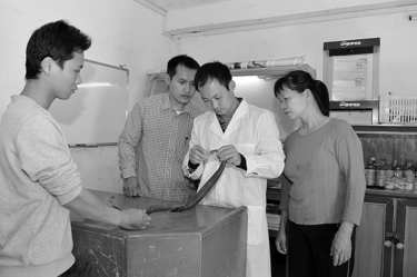 | 李羽峰正在帮助养殖户诊断、治疗蛇病。 |