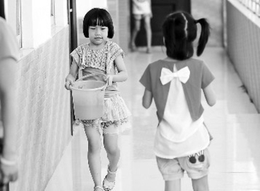 学习国画的孩子自己装水、自己洗笔,培养独立意识。