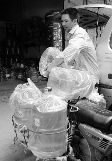 中午时分,当天玉林的户外温度达到35℃,炎炎烈日下,热浪滚滚,走在路上像在蒸笼里一般闷热,当市民在下班后在空调房里享受夏日清凉的时候,罗师傅却迎来了烈日“烘烤”下一天最忙碌的时段,在这种高温气下,即使空着手爬楼梯也让人累得气喘喘,汗流浃背,何况要扛着20公斤重的水桶,其辛苦劳累不言而喻。罗师傅告诉记者,每天送水的高峰期是在中午12时至14时,约占日送水量的30%~40%,像这样的高温天,他每天要送100多桶水,遇上忙时,下午2时才吃午饭是常有的事。