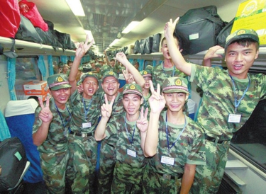 9月5日下午,我市在玉林军供站举行2014年新兵入伍欢送大会,热烈欢送我市今年首批195名新兵踏上征程。玉林军分区政委李必文,玉林军分区参谋长周文喜及市征兵领导小组成员单位负责人出席欢送仪式。 据悉,首批195名新兵来自北流市、陆川县,当晚19时许,新兵惜别亲人登上列车前往军营。从9月5日起至12日,我市1600多名新兵将陆续在玉林火车站乘车踏上征程。 图为:“我们出发了!”新兵登上列车奔赴军营。 (本报记者陈东实习生周亮摄)