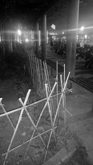 本报讯(记者曾昶)玉林市江南公园北侧靠近玉林国际会展中心附近有一块绿地,各种花、小灌木、绿草在园林工人的精心呵护下,在里面肆意生长。一条弯弯曲曲的石子路,将绿地一分为二。 绿地的三面,到晚上时是三个场地的大妈“割地”而舞,常常是这边跳“小苹果”,另一边跳“是谁在歌唱”,还有一边舞曲是“你让我心醉”。话说一些舞蹈积极分子为了学跳舞,从一边跑到另一边正教跳舞的大妈那去,为了抄近路,常常从花丛和绿草中直接踩踏过去,造成很多块绿草“秃头”变成了路。最近,园林工人给这块绿地扎上了竹篱笆,希望各位不要再肆意踩踏,小草也会怕疼的。