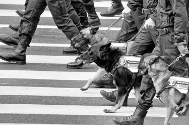 法国 2012年7月14日,在法国首都巴黎,法国宪兵与警犬参加国庆阅兵式。 (新华社记者高静摄)