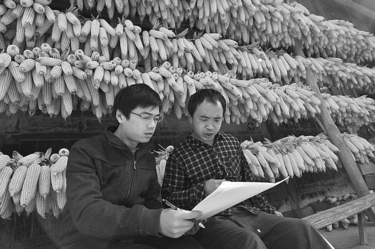 | 12月16日,湖北省宣恩县委宣传部"扶贫家长"吴松(左)在李家河回龙村贫困农户乐松清家中商量制定脱贫致富"作战图"。(新华社发宋文摄) |