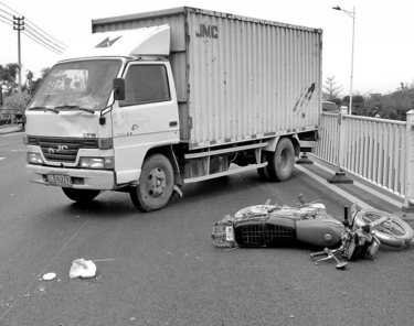 货车“吻”上摩托