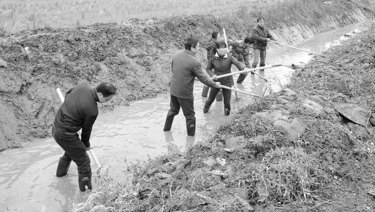 | 3月11日,玉州区组织300多名干部群众开展义务植树活动暨"兴水利、种好树、优生态、惠民生"主题活动。当天共清淤水利渠道2公里;种植红千层、红槐等绿化树300多株。图为干部群众正在合力清理水渠里的淤泥。