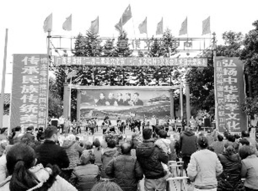 3月9日至10日,即农历二月初一至初二,国家级生态农业旅游示范村北流市罗政村,举办一年一度的“农历二月二裴圣文化节”,旨在弘扬以“保家爱民”为核心内容的北流民间“裴九娘文化”。 本次文化节最大的亮点是3月10日举行的“《广州文摘报》文友会艺术团大型文艺演出”。来自广州30多人组成的专业艺术团与罗政村小学、罗政村幼儿园的孩子们轮番登场,一共表演了20多个民族歌舞、现代歌舞、健身操、快板、粤曲演唱、乐器演奏等节目,吸引了玉林、北流、容县等各地众多游客前来观看。 据了解,罗政村自2003年起,每年都举办一至两届以“弘扬裴圣文化,构建和谐社会主义新农村”为主题的“旅游文化节”。图为文化节演出现场。(杨光登摄)