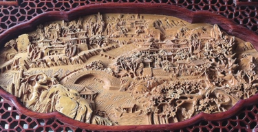 厉子根创作的木雕作品《三江口》,繁简、张弛、疏密之间形成了鲜明的艺术对比。