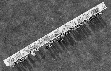 农民画家张家口呕心沥血创作的长达30米的画作《绿珠女》,展开在博白中学的球场上。