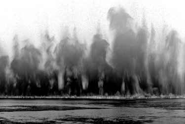 7月14日,梁子湖与牛山湖隔堤爆破瞬间。(新华社 发 何智利 摄) |