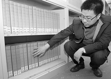 | 3月13日,十二届全国人大五次会议秘书处工作人员在介绍归档的纸质建议档案。(新华社记者 金立旺 摄) |