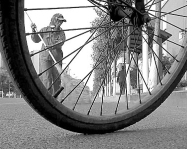 | 这是薛海英在天津滨海新区清扫马路(2016年9月15日摄)。(新华社发) |