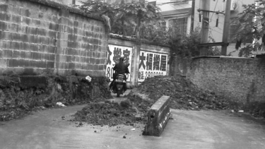 | 被大堆泥土封堵的路面,居民出入非常不便。 |