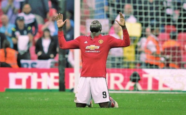 | 4月21日,曼联球员卢卡库在比赛中庆祝进球。(新华社发 蒂姆·爱尔兰 摄) |