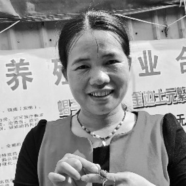 | 让人望而生畏的蝎子,在刘海兰手里服服帖帖的。 |