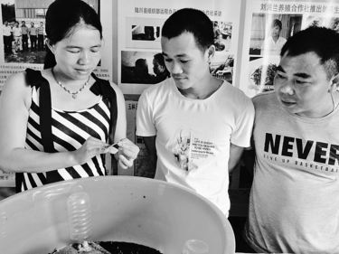 | 刘海兰在向养殖户讲解蝎子的养殖技术要点。 |
