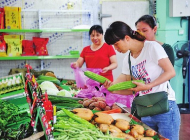 | 顾客在方邦公司的生鲜超市选购果蔬。 |