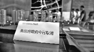 济南市历山路上的一个楼盘售楼处摆出取消限购的提示(7月10日摄)。