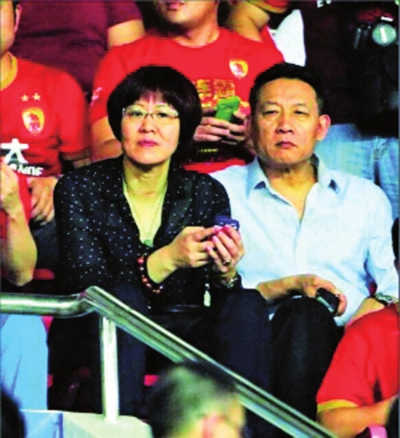 | 2013年,郎平和王育成一起观看恒大队比赛 |