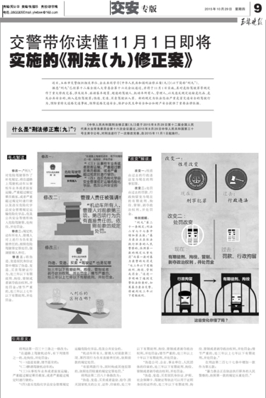 交警带你读懂11月1日即将实施的《刑法(九)修正案》