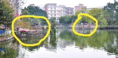 凉亭(圈示处)已拆除,准备重建