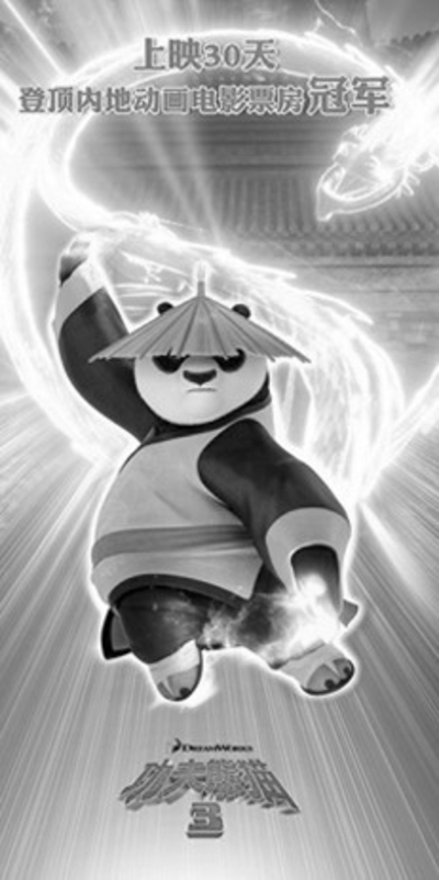 根据国家电影事业发展专资办的数据,截至2月27日,动画电影《功夫熊猫3》上映30天内地票房突破9.6亿,一举打破《西游记之大圣归来》此前上映2个月创下的9.56亿票房纪录,登顶内地动画电影票房冠军。鉴于《功夫熊猫3》延期放映至3月27日,该片还极有可能成为影史首部票房过10亿的动画电影。据悉,《功夫熊猫3》幕后中国团队力量强大,全片约1/3在中国制作完成。 刷新多项影史纪录 自1月23日点映以来,《功夫熊猫3》“熊霸天下”刷新多项影史纪录。1月23日,《功夫熊猫3》举办全国千场点映,3小时创造4273万的票房,刷新动画电影内地点映票房纪录;1月29日公映当天,半日破亿刷新动画电影票房最快破亿速度,首日以1.52亿票房再刷动画电影首日票房纪录、动画电影单日票房纪录;1月30日上映第二日,票房再破亿,累计达到2.7亿,以两日破两亿的速度创动画电影最快过2亿纪录;1月31日上映第3日,票房持续破亿,首周狂揽3.8亿,刷新影史动画电影首周票房纪录、3日破3亿最快过3亿纪录,并成为影史唯一连续三天票房破亿动画电影;2月7日,影片连续10天蝉联当日票房冠军,刷新影史纪录。 春节期间,面对《美人鱼》《澳门风云3》《西游记之孙悟空三打白骨精》三部大片的多面夹击,《功夫熊猫3》排片受到重压下跌至6%左右,但其精美的中国元素、强劲的口碑、全年龄段覆盖的“合家欢”魅力仍然力挺其成为春节期间除三片外唯一一部票房还能保持在每日2000万以上的电影,并逆势而上实现连续六天排片、票房全盘“逆跌”,走出票房神曲线。上周末《功夫熊猫3》仍显示出顽强的后劲,成为前五中唯一比周六出现逆跌的影片。《功夫熊猫2》2011年上映,而《功夫熊猫3》则五年磨一剑,众多粉丝和观众感叹“太难等”,因此也被观众称为“2016年绝对不能错过的电影”,此番登顶可谓众望所归。目前《功夫熊猫3》走势依然坚挺,建议春节期间由于排片问题错过观影的观众,抓紧机会去影院一睹其冠军风采。 中国元素惊艳全球 作为中国内地影史第一部中美合拍的动画电影,《功夫熊猫3》此次的成功幕后强大的中国力量功不可没,据悉,200名东方梦工厂动画师与梦工场动画团队合作拍摄,全片1/3在中国制作完成,这也是影史上第一次有如此大量的中国动画师参与了包括美术开发、模型、绑定、贴图、角色特效、特效、数字绘景和剪辑等在内的国际电影制作不同阶段,每天早上双方团队都会通过视频会议就创意、制作等方面进行沟通。此次“史无前例”专门为中国观众量身打造的中文版也由中方团队完成。(胡小雨)
