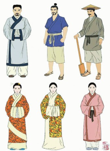 汉服,意指汉族的传统民族服饰。汉服自“黄帝垂衣裳而天下治”而始,止于清代“剃发易服”,并非人们误以为的“汉朝的衣服”。几千年来,汉服虽历经多个朝代的润色,但最初的“深衣”仍是汉服的不二代表。 衣裳里的秘密 传统汉服深衣有三大讲究。一为“交领右衽”,衣服前襟左右相交,汉服为向右掩,交领的右衽覆盖于左衽之上,也体现了右衽为阳在外,左衽为阴在内的阴阳观念,显出独特的中正气韵,代表做人要不偏不倚。 二为“褒衣宽袖”,汉服的衣服都宽松,且袖子宽大,长过手臂。深衣宽大的衣袖呈圆弧状以应规,交领成矩以应方,代表“不依规矩不成方圆”。 三为“系带隐扣”,汉服的衣服大多不用扣子,而用绳带系结。依着如此特性,古人在身着汉服时,走起路来潇洒飘逸,轻挥衣袖,便带起一阵清风。 古人素来敬畏天地与自然。他们将上衣分裁四片,即为了意喻“四季”;下裳分裁十二片,则为了对应“十二月”。喻意人的生活起居顺应四时、十二月之序。其中袖圆以应“天圆”,衣领交叠成矩形以应“地方”,以寓“天圆地方”。古人将天地藏于衣服,是为了时刻提醒自己做人不可任性妄为,上有天,下有地,做人也要有规矩。 中国古代的“天圆地方”学说并不是地理上的概念,它讲的是一种道,一种规律,一种文化。天圆,代表的是天道圆融,讲究的是和谐、循环的规律;地方既如人道,讲究的是方正、中和、行为有规范。 历代汉服之美 汉服延续千年,其中以唐、宋、明为代表。因不同朝代各有特色,汉服也演变出了不同的姿态。 汉服最主要的特色是交领右衽、袖宽且长、以绳带繫结取代扣子。这些特色不仅有别于其它民族的服饰,也使邻国深受汉服影响而产生和服、韩服。 中国古代汉服最常见的深衣是上衣和下裳相连在一起,用不同色彩的布料作为边缘,使身体藏而不露、雍容典雅。深衣象征天人合一、恢宏大度、公平正直、包容万物的中国传统美德。深衣背后有一条直缝贯通上下,象征人道正直;腰系大带,象征行动进退符合权衡规矩。因此人穿上了深衣,不但应天时地利人和,在进退行走之间还要想到为人的权衡中正,与天地自然相融合。 唐唐朝女子虽然衣着风情,但绝不风骚。唐朝的女子以丰腴为美,礼服多以合宜的袒胸、低领、大袖为主,走起路来大袖翩翩、华带飞舞,显得格外飘逸。也是因为身材微胖,唐代女子尤其喜着宽松的裙装,多为上身着襦下身着裙。襦要短且小,裙要肥且长。裙系高腰至胸部,甚至系在腋下,系扎丝带,颈部与胸部的肌肤露在外,给人以优雅、修长、飘逸之感。 云肩是从隋唐开始发展形成的一种衣饰,它围脖子一周,佩戴在肩上。云肩上绣的四季花果和四周垂吊着的绿色长穗交相辉映,人彷佛和大自然融合在一起,包罗万象,耐人寻味。云肩的整体造型,外圆内方,这种“天人合一”的创意,体现了万物之间的相互包容与和谐在中国传统服饰文化中的价值。 宋宋朝理学思想盛行,在“存天理,灭人欲”的道德束缚下,人们抛弃了奢侈浮华的作风,流行“女子学恭俭超千古,风化宫娥只淡妆”。 宋代的衣着崇尚俭朴、清雅。宋代的汉服多以纱罗为主,绣绘图案或缀以珠玉。裙子中间的飘带上还常挂一个玉环,用来压住裙摆,使裙子不至于随风飘舞而失优雅之仪。 这块玉的名字叫“玉环绶”。《礼记·玉藻》曰:“古之君子必佩玉,君子无故,玉不离身。”古人佩玉是时刻提醒自己,做人也要像玉一样清透而温润,自始至终都怀有高尚的品行美德。 明与宋朝相反,明朝是一个追求华丽的朝代。明朝的服饰,从衣料、色彩到纹饰无不呈一派艳丽之气。 明朝中后期天气变得寒冷,为了保暖,明代的汉服上衣被拉长,露裙被缩短,衣领也从宋代的对襟领变为以圆领为主。只待汉服重归华夏 中国自古就被称为“衣冠上国、礼仪之邦”。汉服代表着中华民族优雅、博大的气质,古朴自然的审美情趣,及敬天礼佛、天人合一的文化内涵。 如今,在日本,任何一个日本女人穿着和服踩着木屐走在街上,行人都不会侧目。在苏格兰,一个男人穿着苏格兰短裙也不会让人惊讶。可如果你在中国穿着汉服上街,别人会以为你精神有问题,让人心痛又无奈。 当人们赞叹韩国人的韩服雍容华贵、日本人的和服美丽端庄时,许多人不知道,韩服只是明朝汉族的一种礼服,而和服只是几款唐朝汉服而已。 汉服无论在文化艺术、诗词歌赋、琴棋书画、武术剑道、音乐舞蹈、品茗茶道等方面,都是最能与中华传统文化相结合的服饰。在历史的承传与发展过程中,汉服充分展现了“仁、义、礼、智、信”的道德内涵,更是纯善纯美的中国传统服饰艺术的重要象征。(据公众号“物道”“易向”)