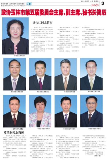政协玉林市第五届委员会主席、副主席、秘书长简历