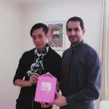 陈星州(左)与迪拜王子Badir Almusharrekh(右)合影。 |
