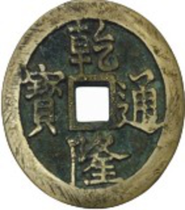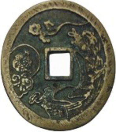 花钱中的字文图案千姿百态,各具姿容,称它为古代“铜版画”并不过分。 如上图所示这是一枚乾隆通宝背嫦娥奔月花钱,钱径53毫米,精黄铜制作。此钱面文“乾隆通宝”四字,楷书,具有颜真卿、柳公权的书法风格。钱背雕刻了一幅“嫦娥奔月”的图画。左侧为月宫,中有玉兔,右侧嫦娥飞升在天际之间,身姿绰约,翩翩起舞,身后云霞漫卷,烘托出嫦娥的飘逸美姿。 此币规矩工整,品相精良,雕刻精美,结体端庄,透露着古朴雅致的风韵。 (周之弦)
