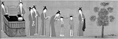 | 《歌乐图卷》,展现宋代宫廷乐舞的场景,在表演之前有乐工致语 |